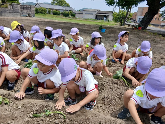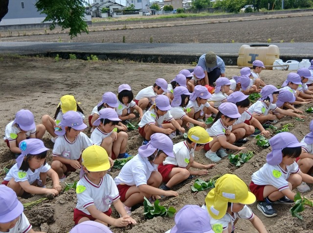 ひとつひとつの苗の間隔や、しっかり土を被せることなど、気にしながら、大切に芋の苗を植えました。
